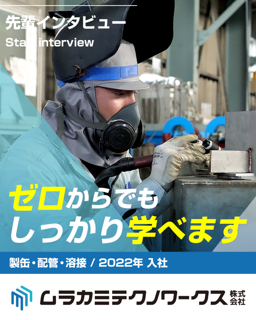 製缶・配管・溶接チームで活躍する佐々木 琉磨さん(2022年入社)のインタビューを公開中!